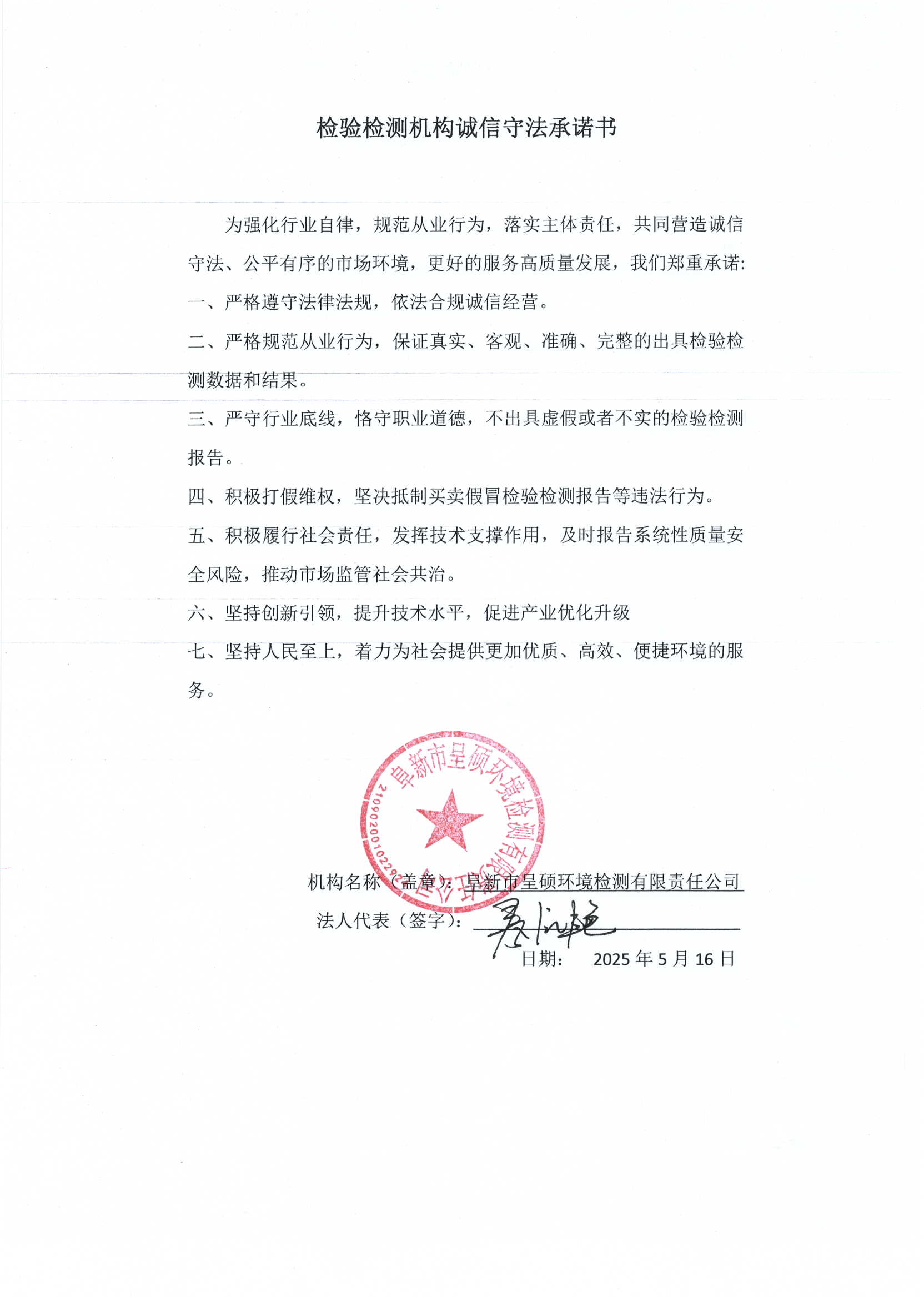 檢驗(yàn)檢測(cè)機(jī)構(gòu)誠(chéng)信守法承諾書